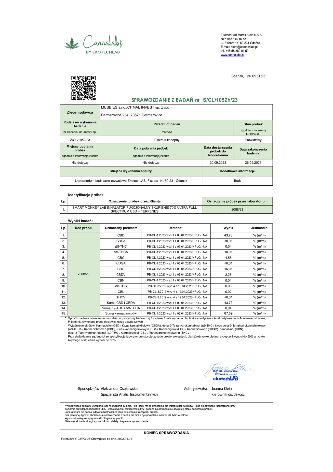 - CBD (43,73%): przeciwbólowe, przeciwzapalne, przeciwlękowe
